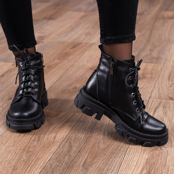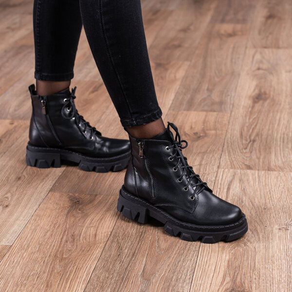 Ботинки женские выполнены из натуральной кожи внутри подкладка из флиса. Модель аккуратно сидит на ножке. Дизайн этой модели в черном цвете. Женские ботинки Shesha – позволят вам сделать ваш образ еще более изысканным и утонченным.