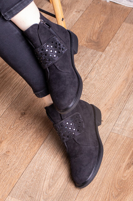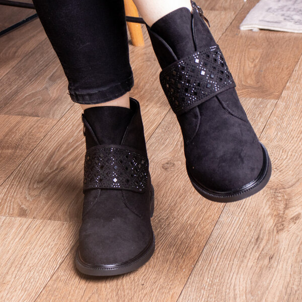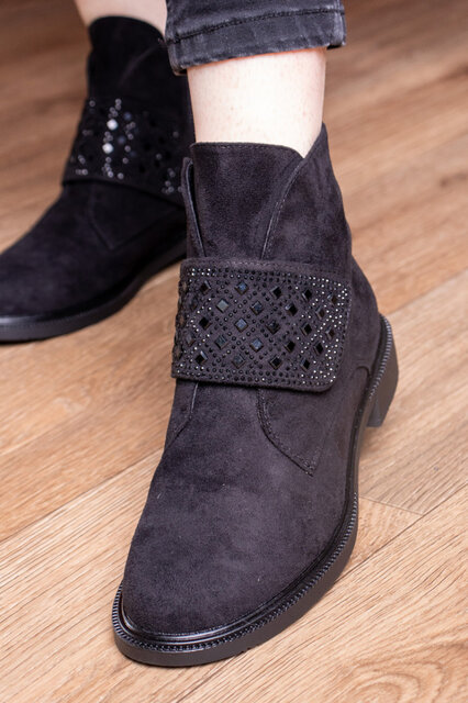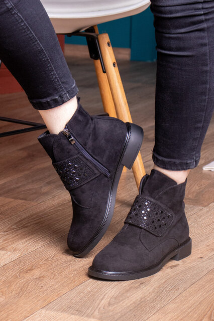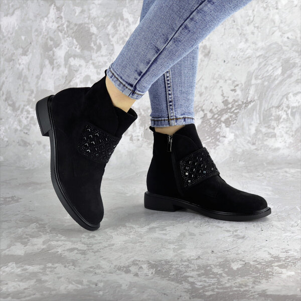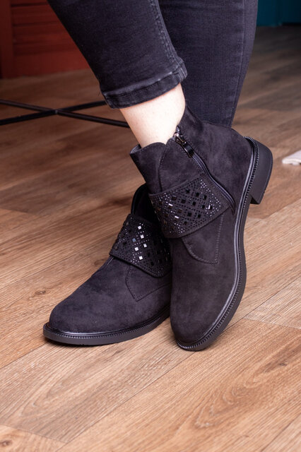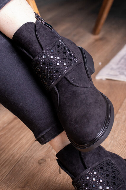 Ботинки женские выполнены из искусственной замши, внутри подкалка из флиса. Модель аккуратно сидит на ножке. Дизайн этой модели в черном цвете. Женские ботинки Tweety – позволят вам сделать ваш образ еще более изысканным и утонченным.