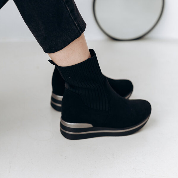 Ботинки женские выполнены из искусственной замши и резинки, внутри подкладка из флиса. Модель аккуратно сидит на ножке. Дизайн этой модели в черном цвете. Женские ботинки Windy – позволят вам сделать ваш образ еще более изысканным и утонченным.