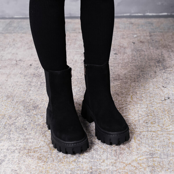 Ботинки женские выполнены из натуральной замши внутри подкладка из искусственного меха. Модель аккуратно сидит на ножке. Дизайн этой модели в черном цвете. Женские ботинки Arwen – позволят вам сделать ваш образ еще более изысканным и утонченным.