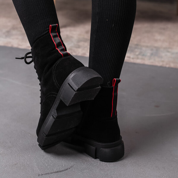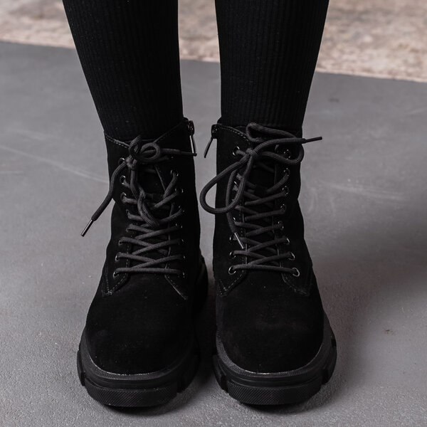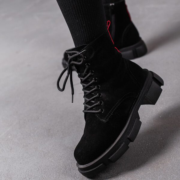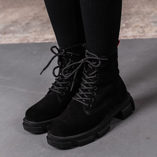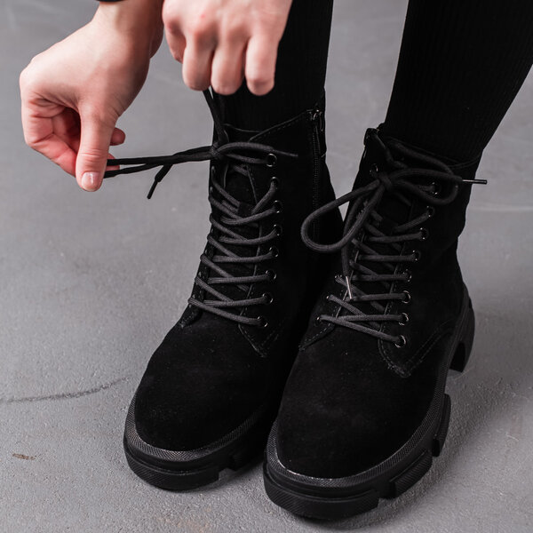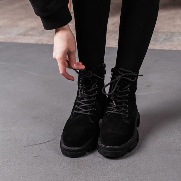 Ботинки женские выполнены из натуральной замши внутри подкладка из натурального меха. Модель аккуратно сидит на ножке. Дизайн этой модели в черном цвете. Женские ботинки Bridget – позволят вам сделать ваш образ еще более изысканным и утонченным.