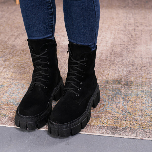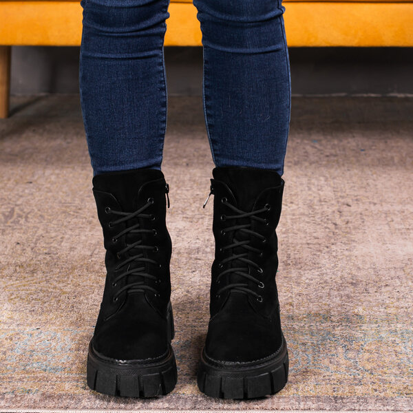 Ботинки женские выполнены из исскусственной замши внутри подкладка из искусственного меха. Модель аккуратно сидит на ножке. Дизайн этой модели в черном цвете. Женские ботинки Bronco – позволят вам сделать ваш образ еще более изысканным и утонченным.