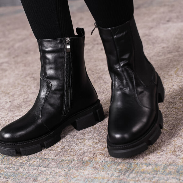 Ботинки женские выполнены из натуральной кожи внутри подкладка из искусственного меха. Модель аккуратно сидит на ножке. Дизайн этой модели в черном цвете. Женские ботинки Dizzy – позволят вам сделать ваш образ еще более изысканным и утонченным.