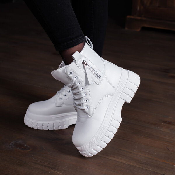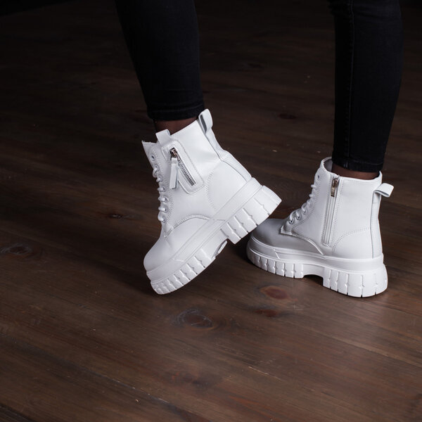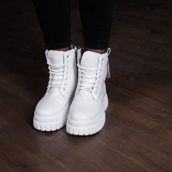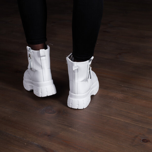 Ботинки женские выполнены из искусственной кожи внутри подкладка из искусственного меха. Модель аккуратно сидит на ножке. Дизайн этой модели в белом цвете. Женские ботинки Katiness – позволят вам сделать ваш образ еще более изысканным и утонченным.