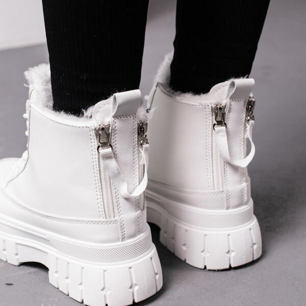 Ботинки женские выполнены из искусственной кожи внутри подкладка из искусственного меха. Модель аккуратно сидит на ножке. Дизайн этой модели в белом цвете. Женские ботинки Lithe – позволят вам сделать ваш образ еще более изысканным и утонченным.