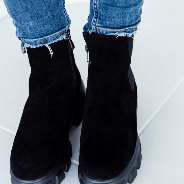 Ботинки женские выполнены из натуральной замши внутри подкладка из натурального меха. Модель аккуратно сидит на ножке. Дизайн этой модели в черном цвете. Женские ботинки Merrylegs – позволят вам сделать ваш образ еще более изысканным и утонченным.