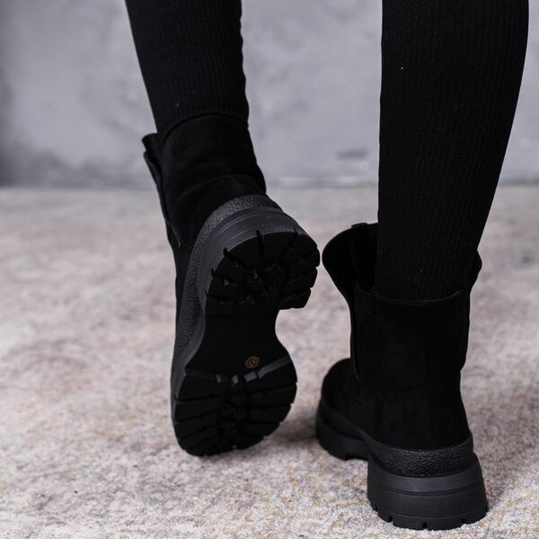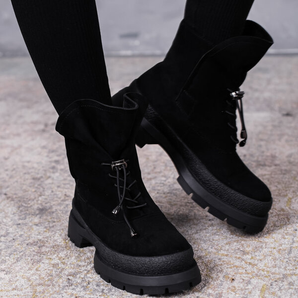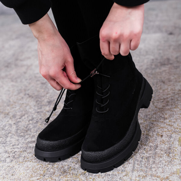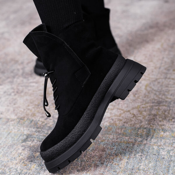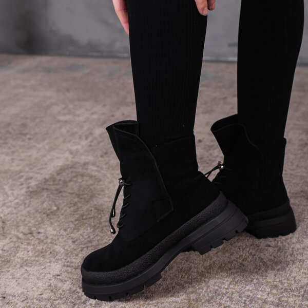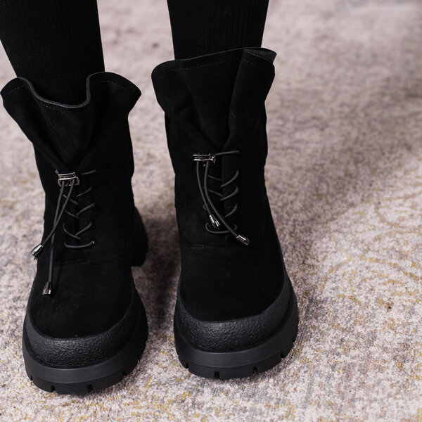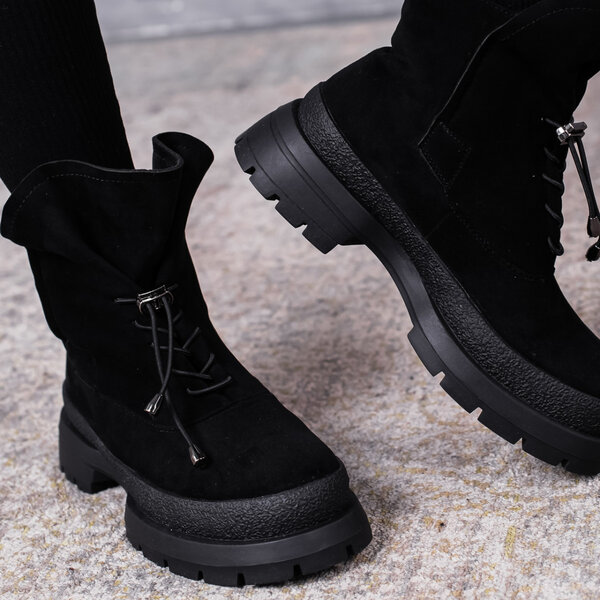 Ботинки женские выполнены из искусственной замши внутри подкладка из искусственного меха. Модель аккуратно сидит на ножке. Дизайн этой модели в черном цвете. Женские ботинки Nora – позволят вам сделать ваш образ еще более изысканным и утонченным.