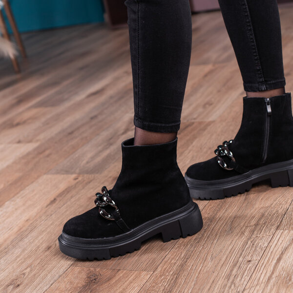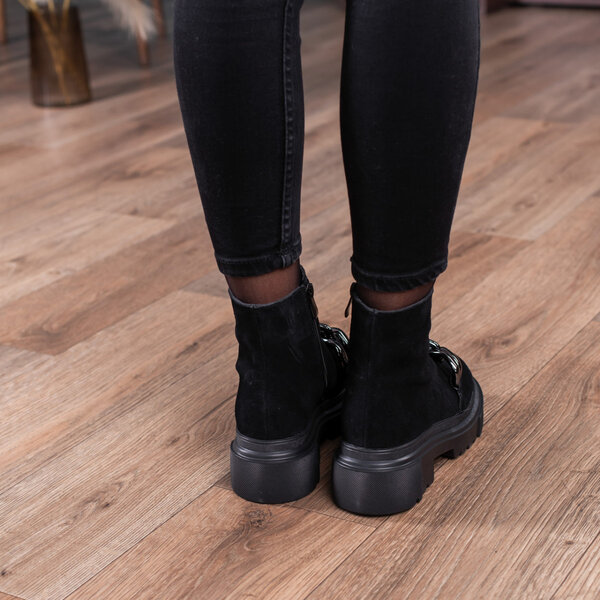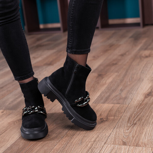 Ботинки женские выполнены из натуральной замши внутри подкладка из искусственного меха. Модель аккуратно сидит на ножке. Дизайн этой модели в черном цвете. Женские ботинки Raider – позволят вам сделать ваш образ еще более изысканным и утонченным.