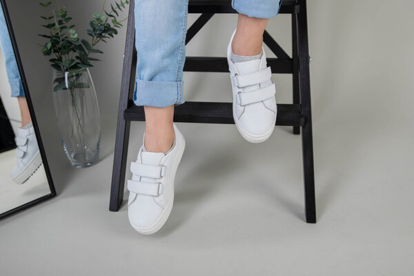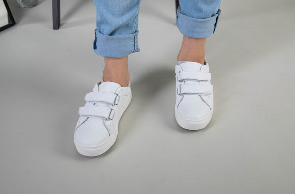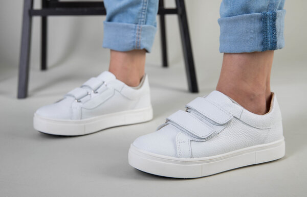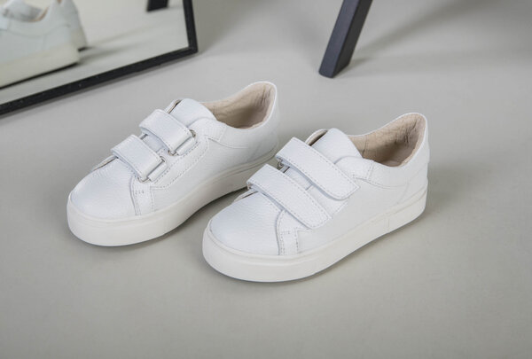 Кеды на девочку кожа флотар белые на липучках
