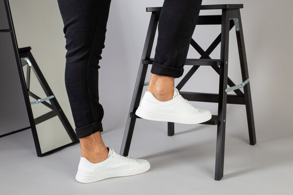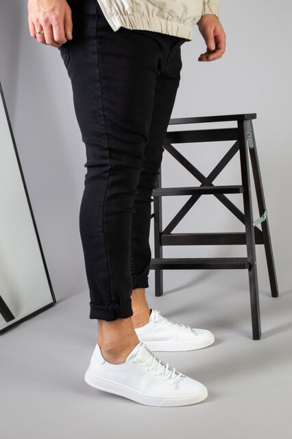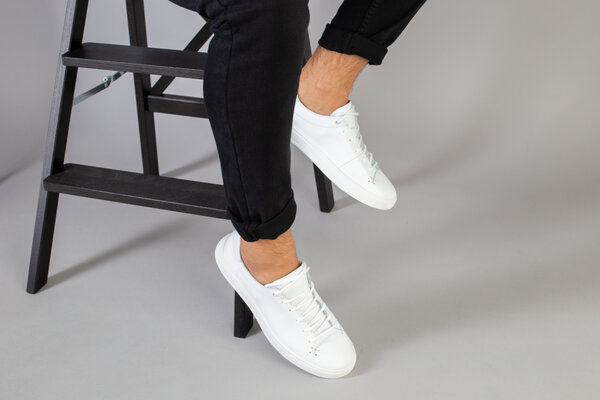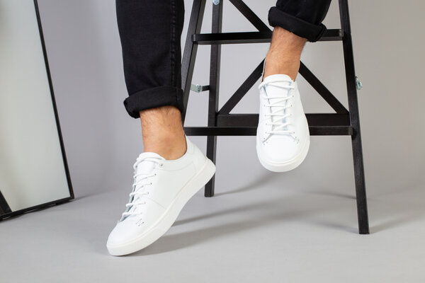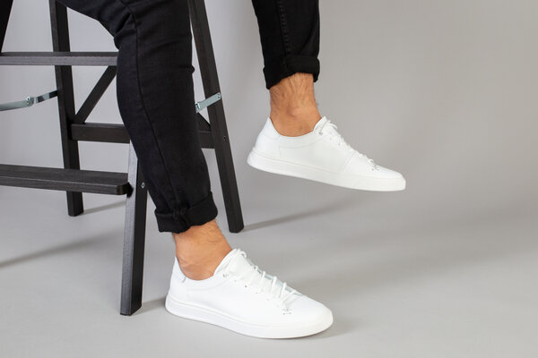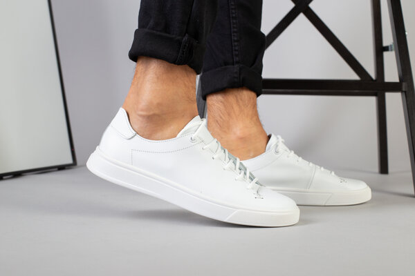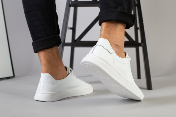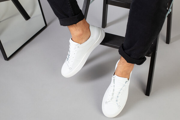 Кеды мужские кожаные белые на белой подошве