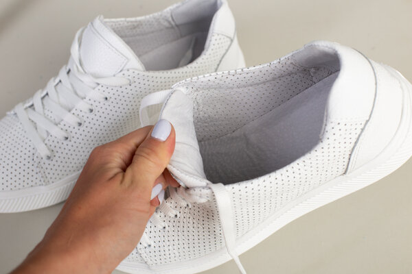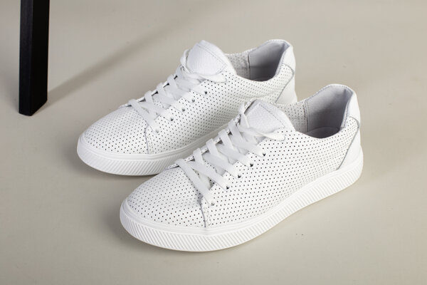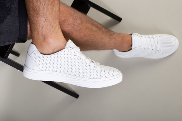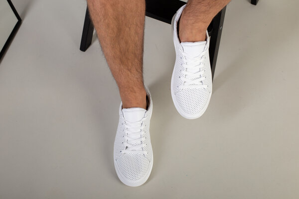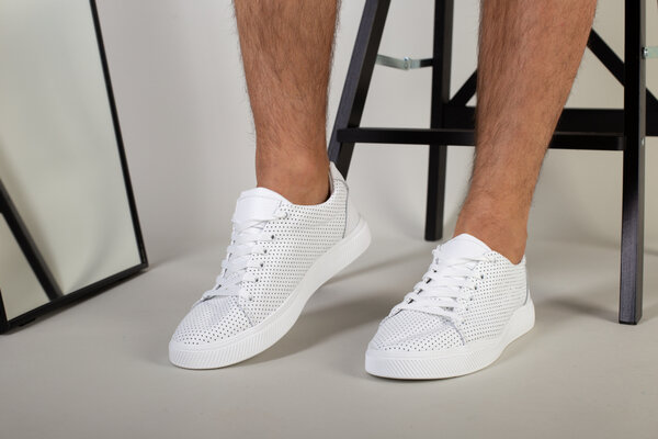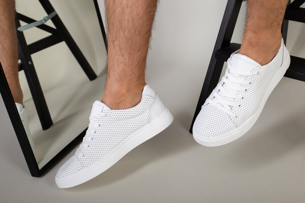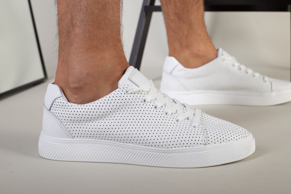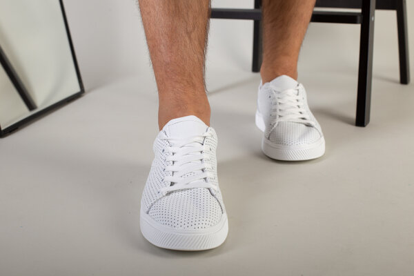 Кеды мужские кожаные белые с перфорацией