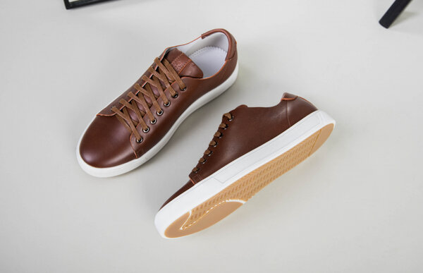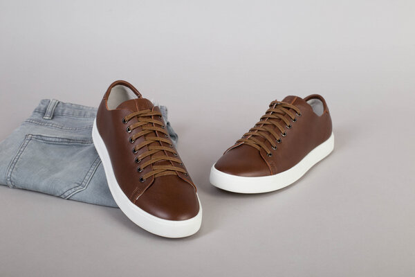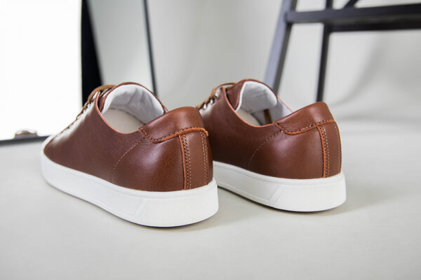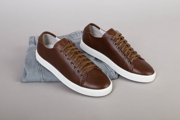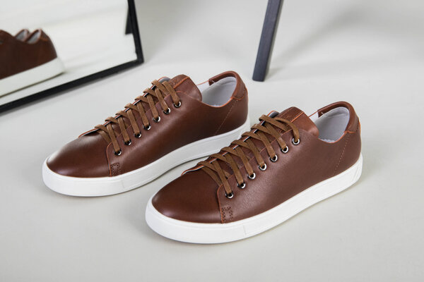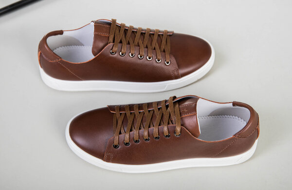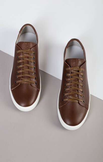 Кеды мужские кожаные коричневые на белой подошве