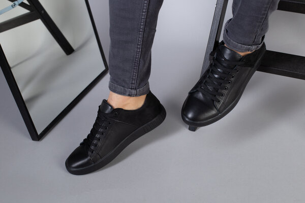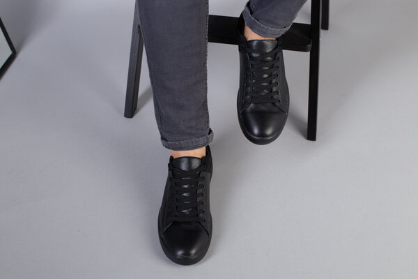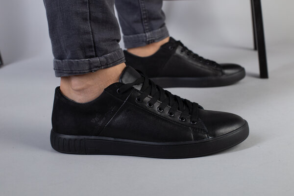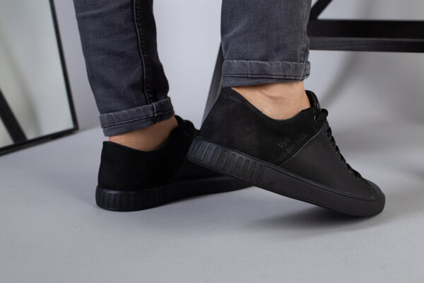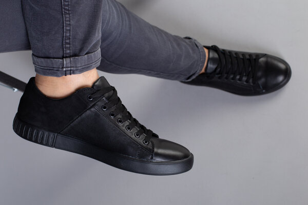 Кеды мужские кожаные с вставкой нубука черные