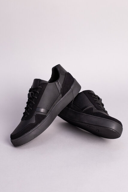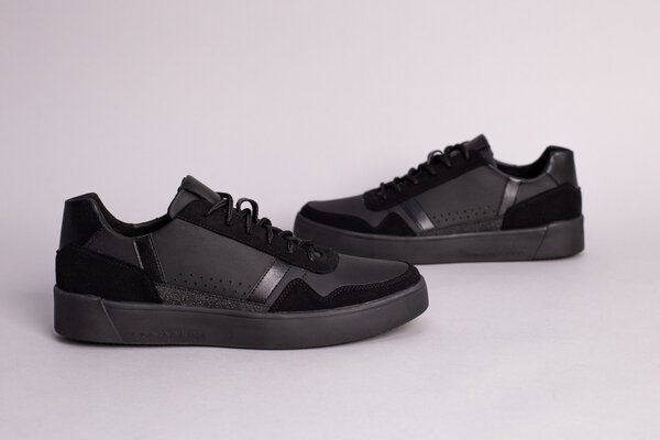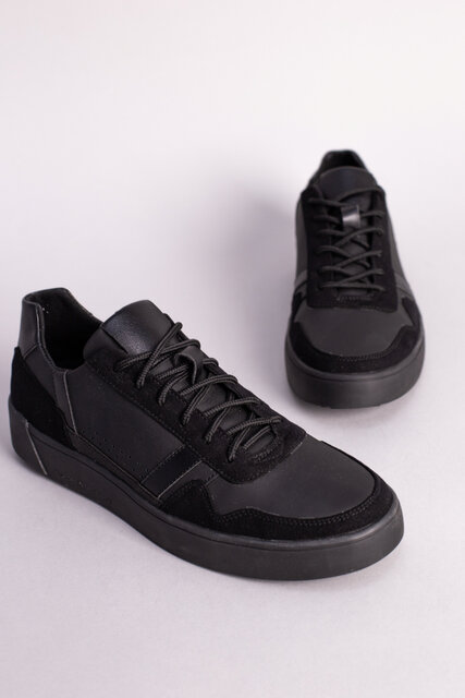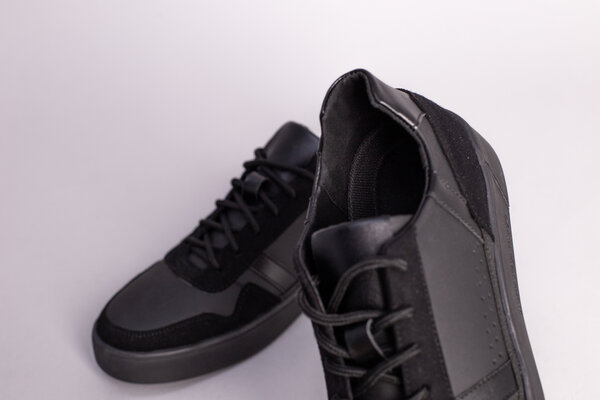 Кеды мужские кожаные черные матовые с вставками замши