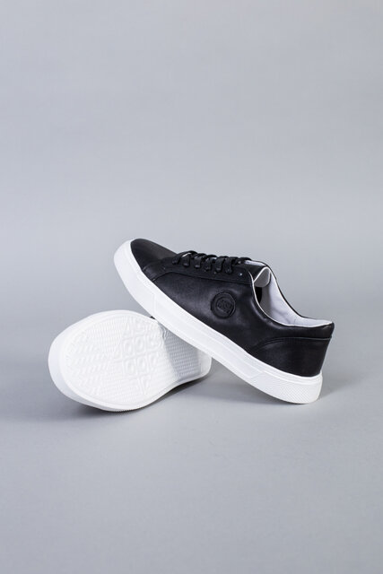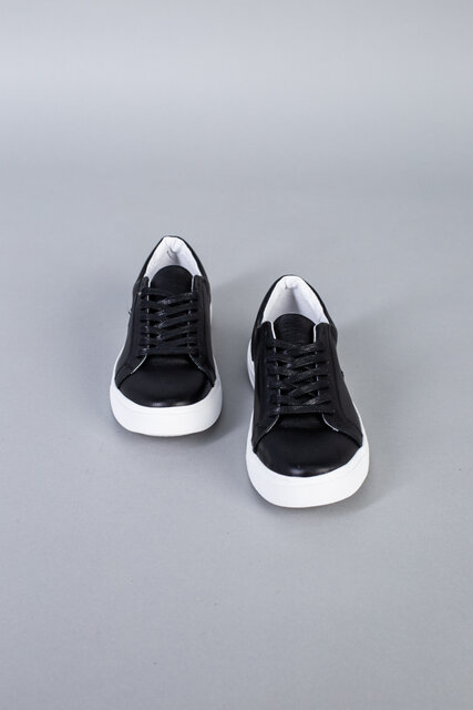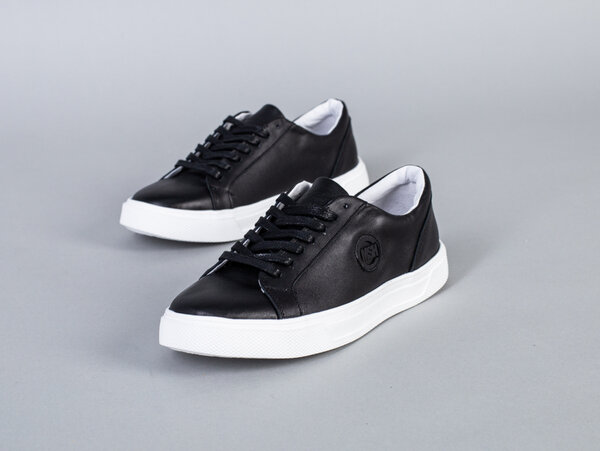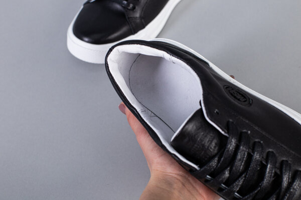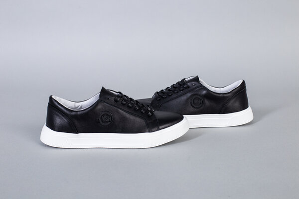 Кеды мужские кожаные черные на белой подошве