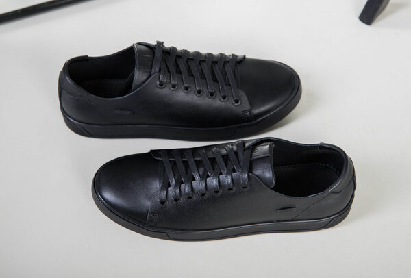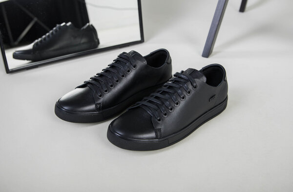 Кеды мужские кожаные черные на кожподкладке
