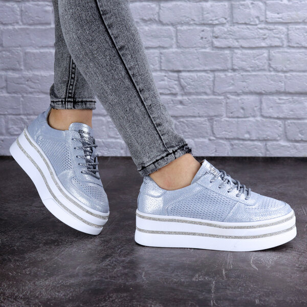 Женские кожаные сникеры Fashion Erly 1709 38 размер 24 см Голубой