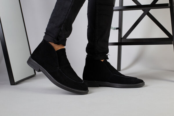 Лоферы мужские замшевые черные на кожподкладке