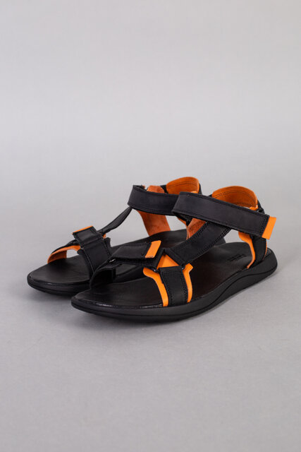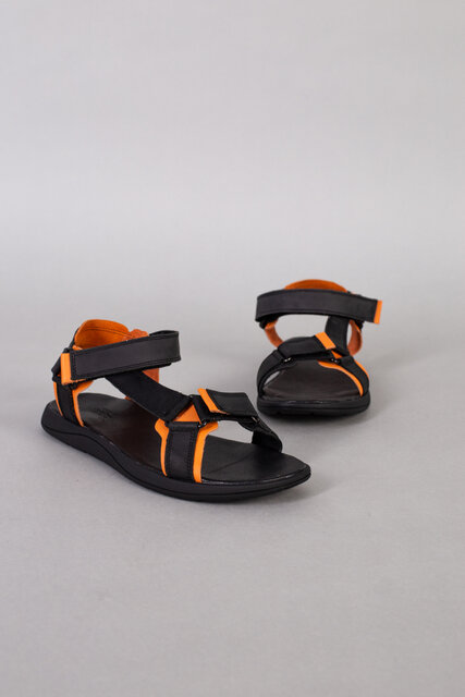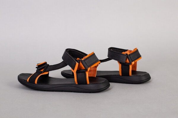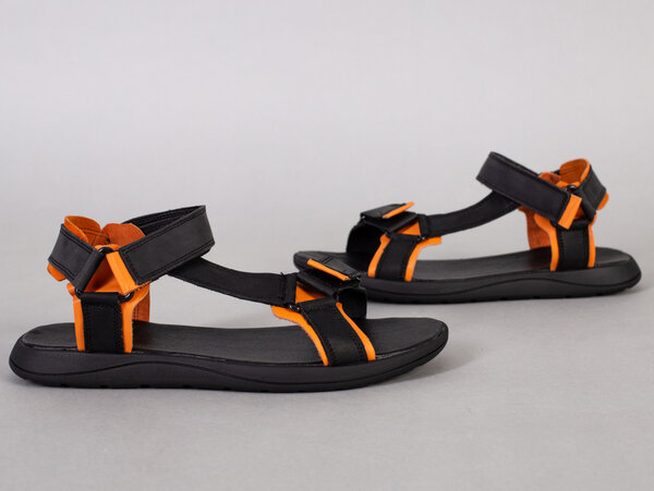 Сандалии мужские кожаные черные с оранжевыми вставками