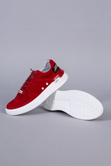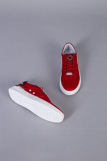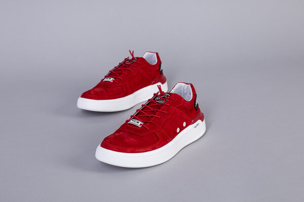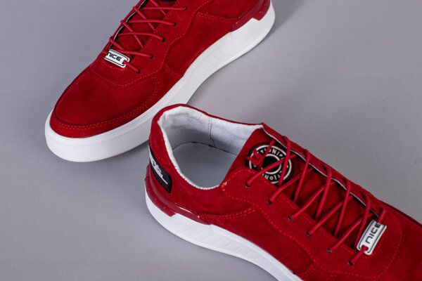 Кроссовки мужские из нубука красного цвета с кожаными вставками