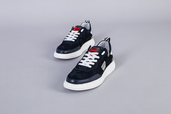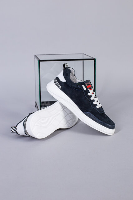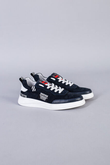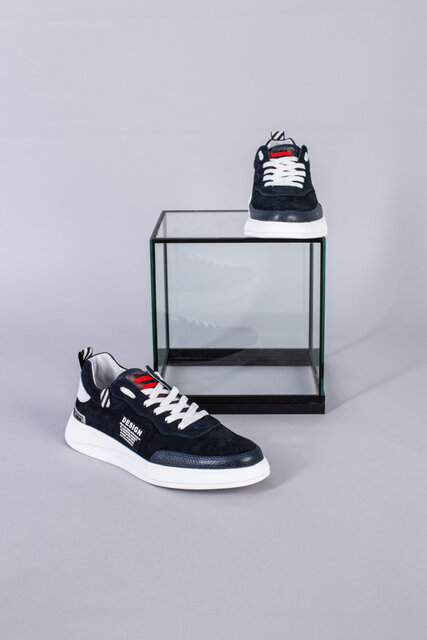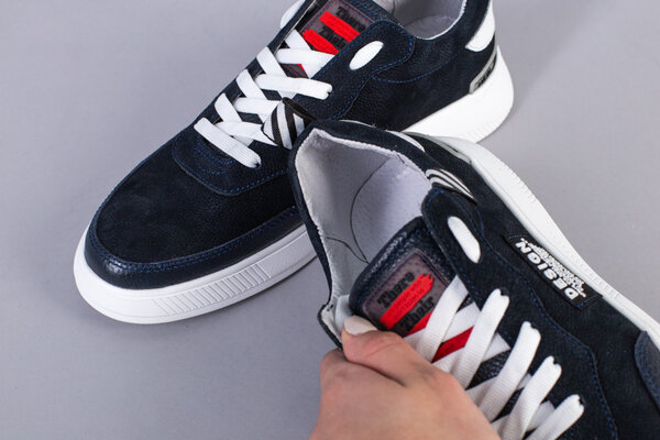 Кроссовки мужские из нубука синего цвета с кожаными вставками