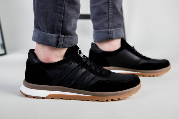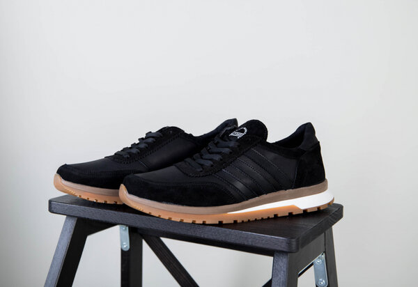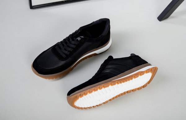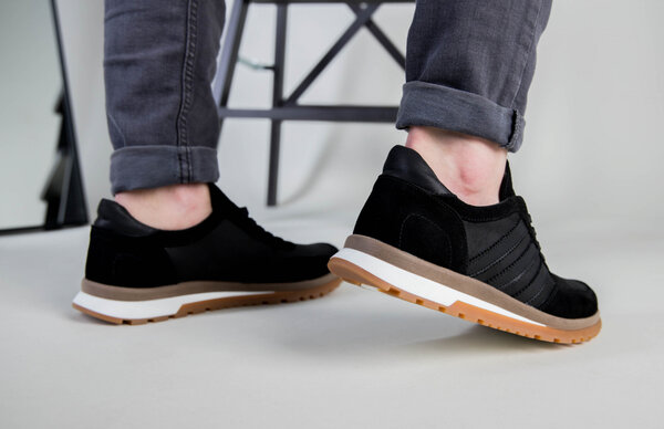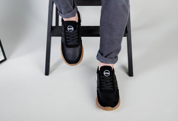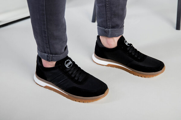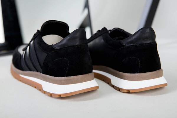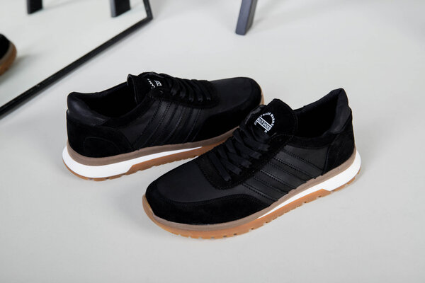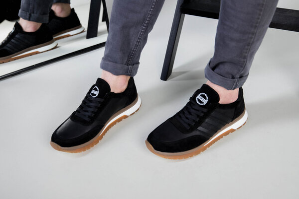 Кроссовки мужские кожаные черные с вставками замши