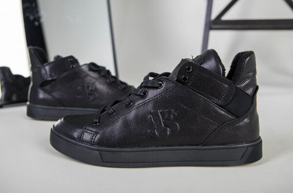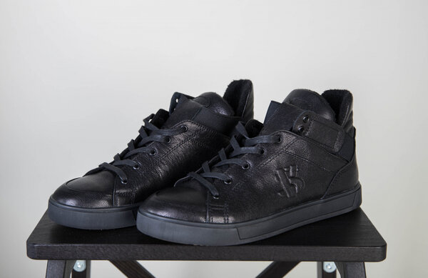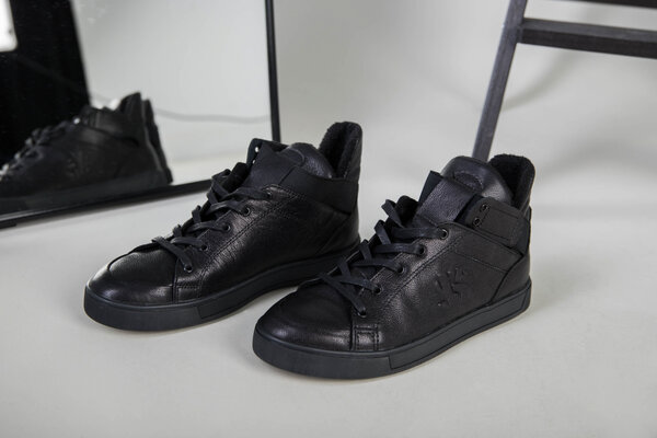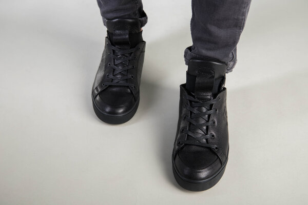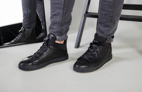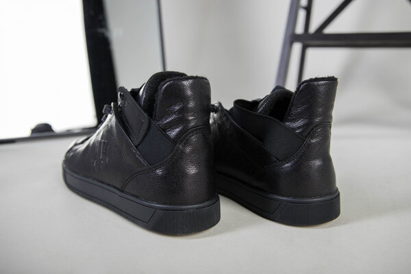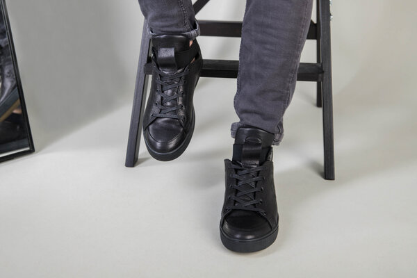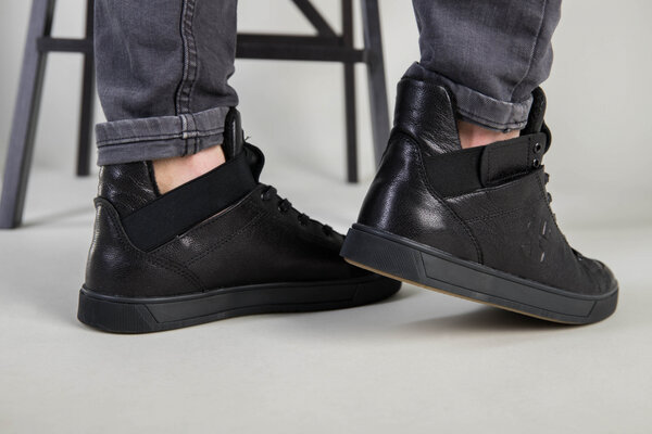 Мужские черные кожаные кроссовки на байке