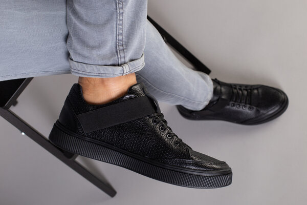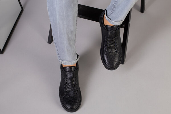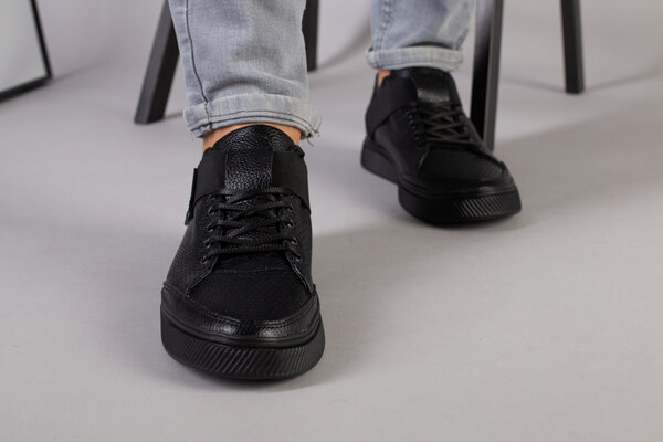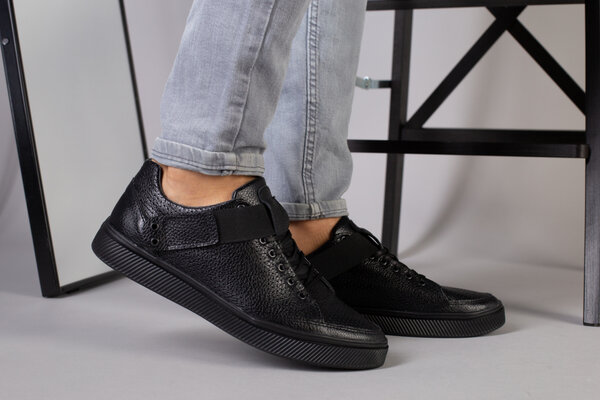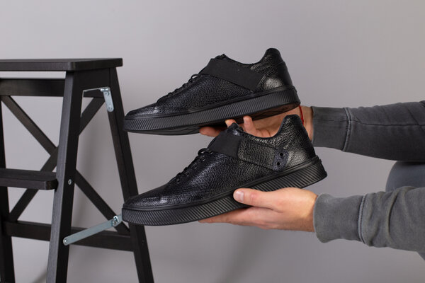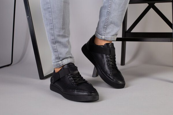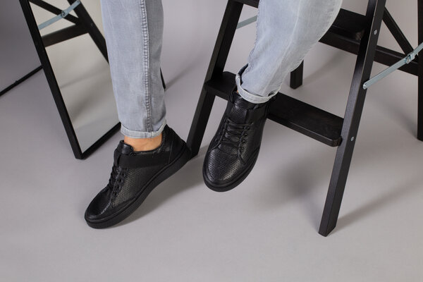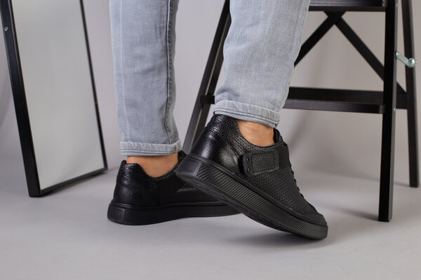 Мужские черные кожаные кроссовки с перфорацией