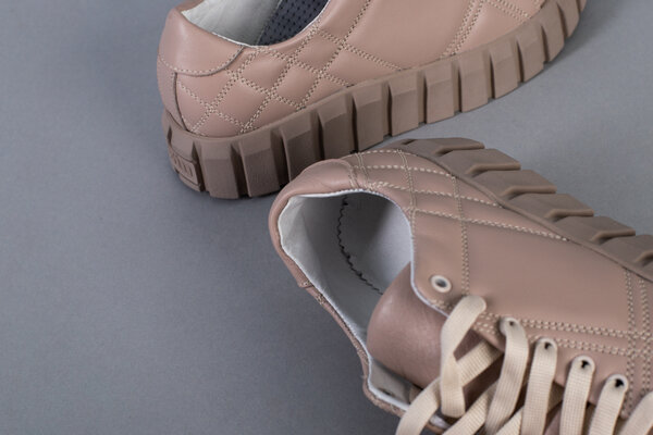 Кеды детские кожаные бежевые на бежевой подошве