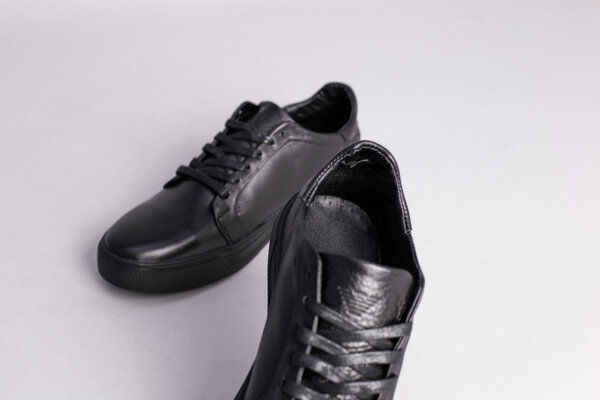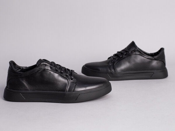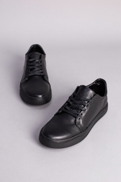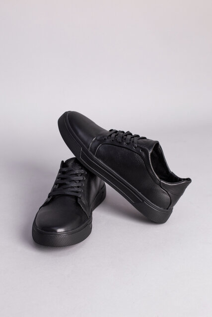Кеды мужские кожа флотар черного цвета на черной подошве