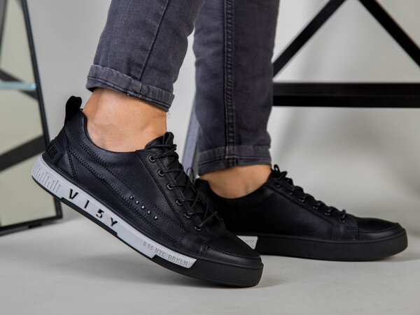 Кеды мужские кожа флотар черные