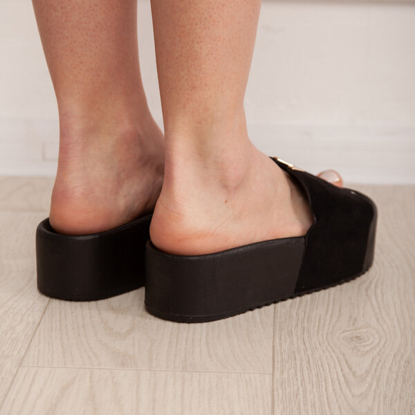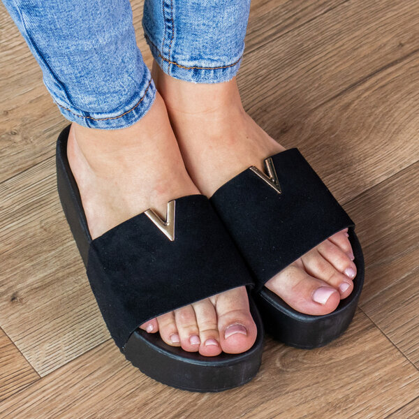 Шлепанцы выполненные из искусственной замши. Дизайн этой модели в черном цвете и с легкостью дополнит любой образ. Женские шлепанцы лёгкие и мягкие – незаменимый атрибут летнего гардероба.