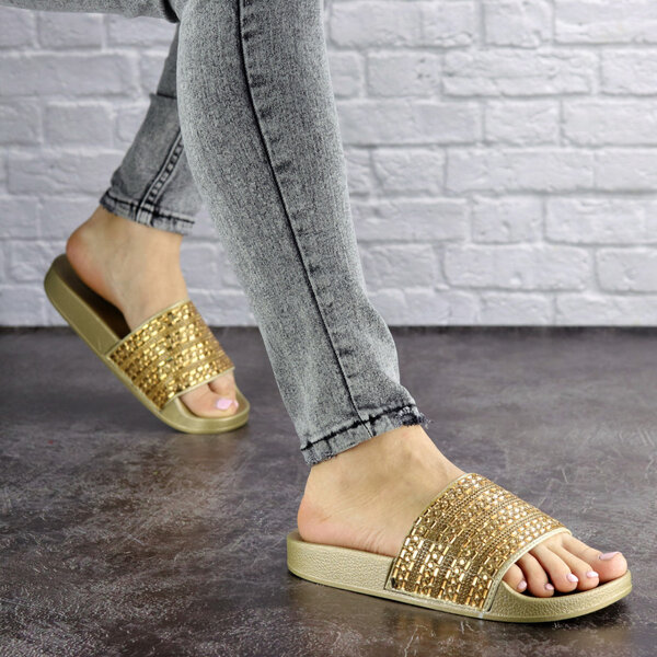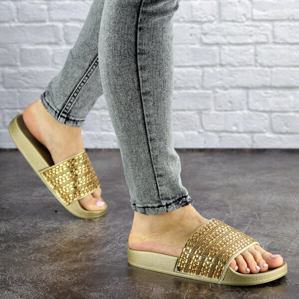 - Шлепки женские золотистые с камнями 1032-2