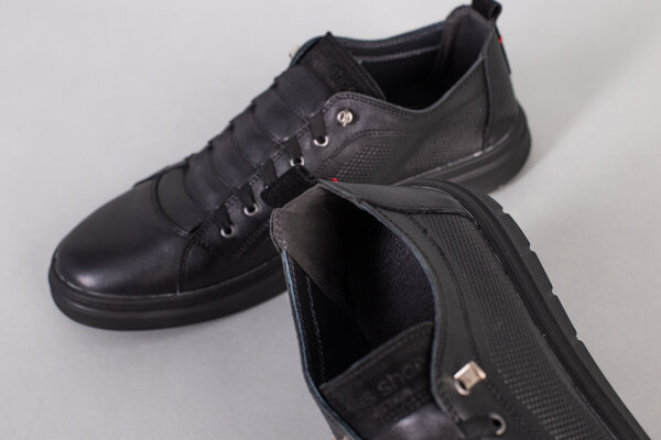 Мужские черные кожаные спортивные туфли