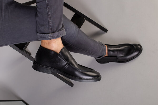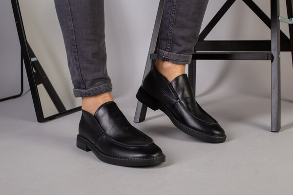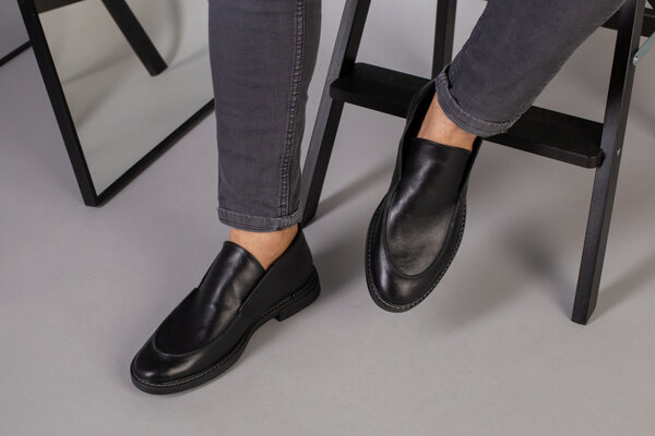 Мужские черные кожаные туфли лоферы с кожподкладкой